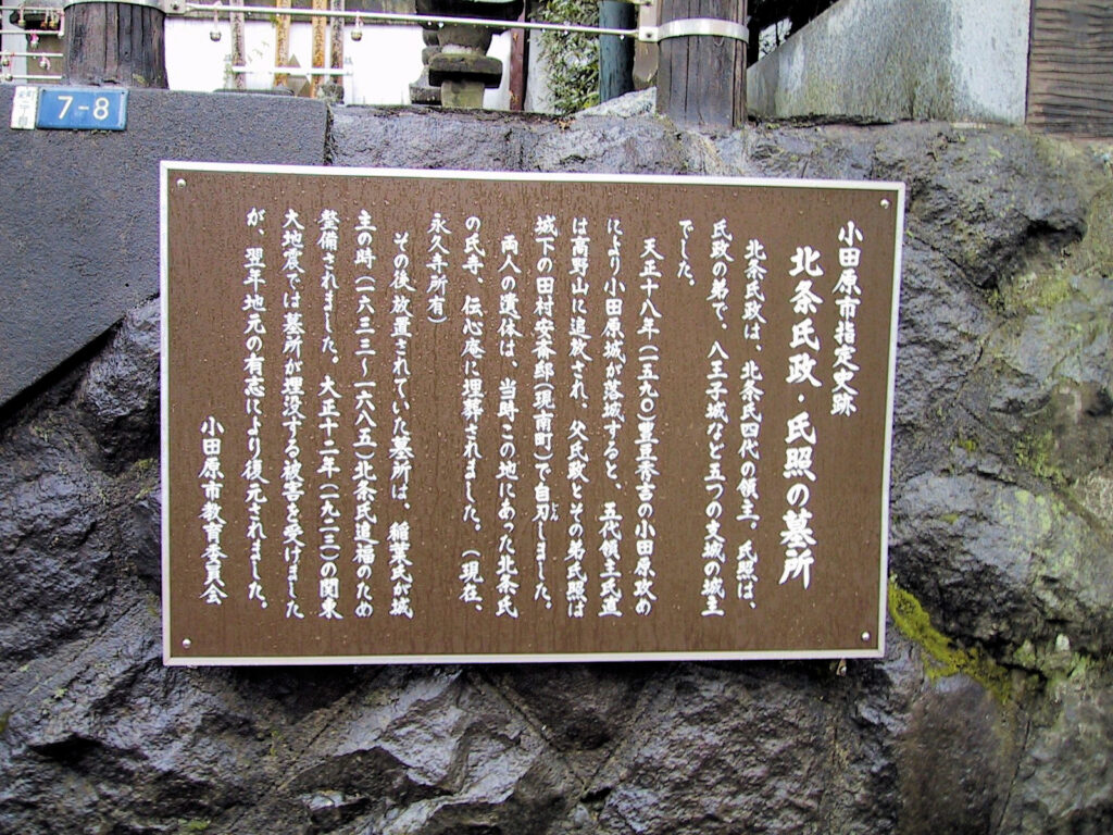 関東方面への2度目の旅行、まずは小田原方面へと向かいました。この時は、千歳空港の滑走路が凍り付き飛び立つのが1時間も遅れたため、余裕があったはずの特急に乗り遅れそうになりましたが、何とか予定通り午後2時過ぎには小田原駅に着きました。荷物を置くために、早速ホテルに向かうと、そのすぐ手前に北条氏政・氏照の墓が...