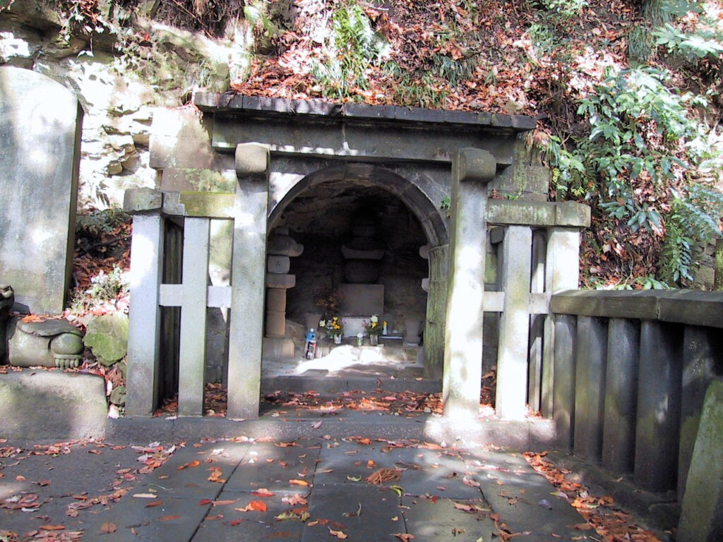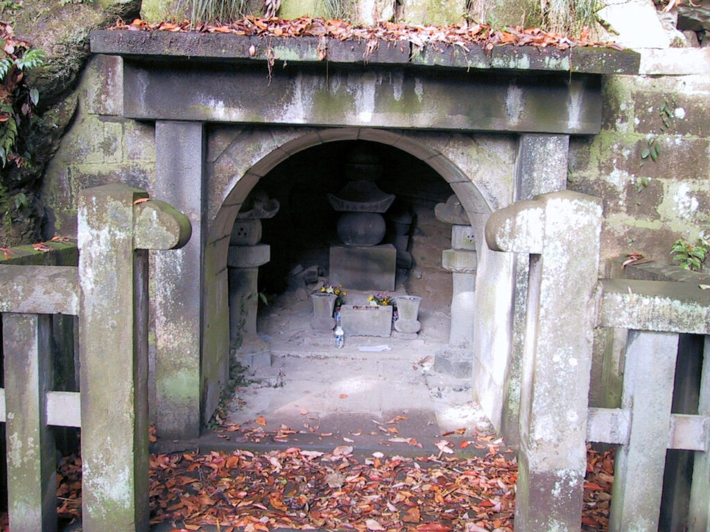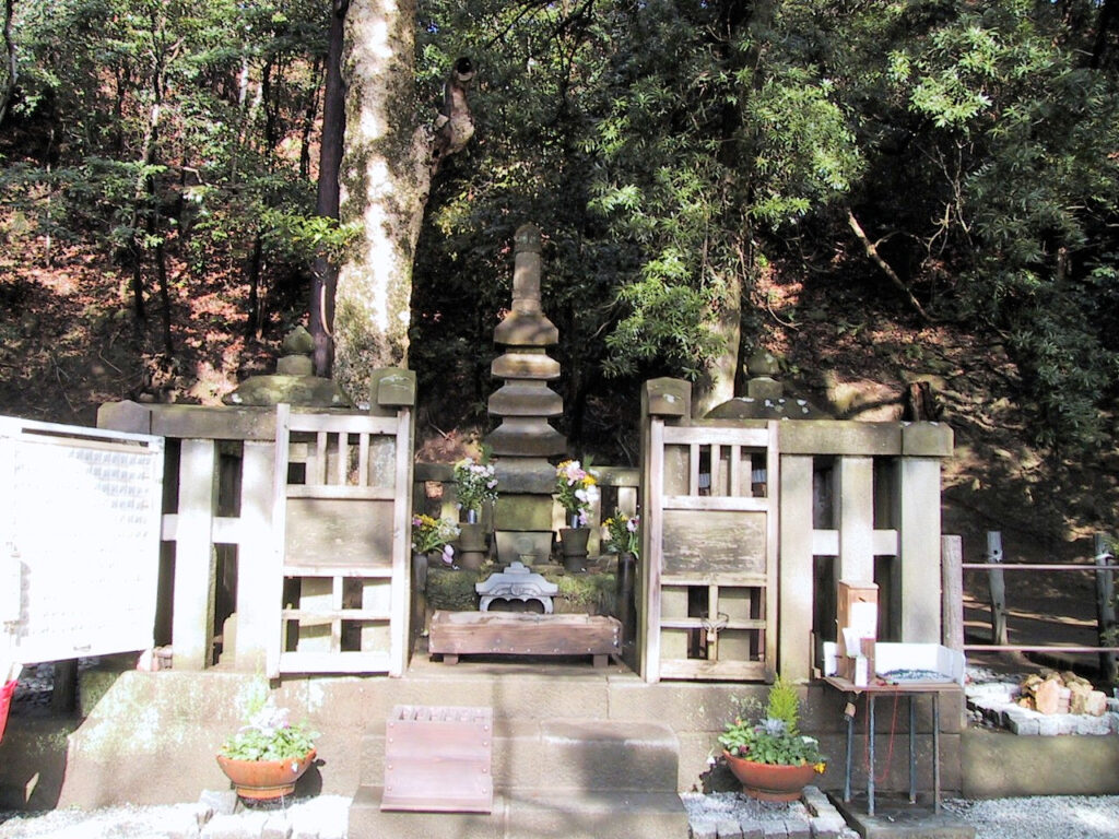 その右奥に登っていくと、大江広元の墓、その子で毛利氏の祖である毛利季光の墓、島津氏の祖で頼朝の子ともいわれる島津忠久の墓が並んでいました。これも頼朝の墓と同じく島津重豪が整備したり、毛利家が後に墓を動かしたものらしく、実際にこれらの人々の墓とは思われませんが、のちに幕府を倒すことになる薩長両藩の先祖の墓が並んでいることに苦笑してしまいました(^^;)