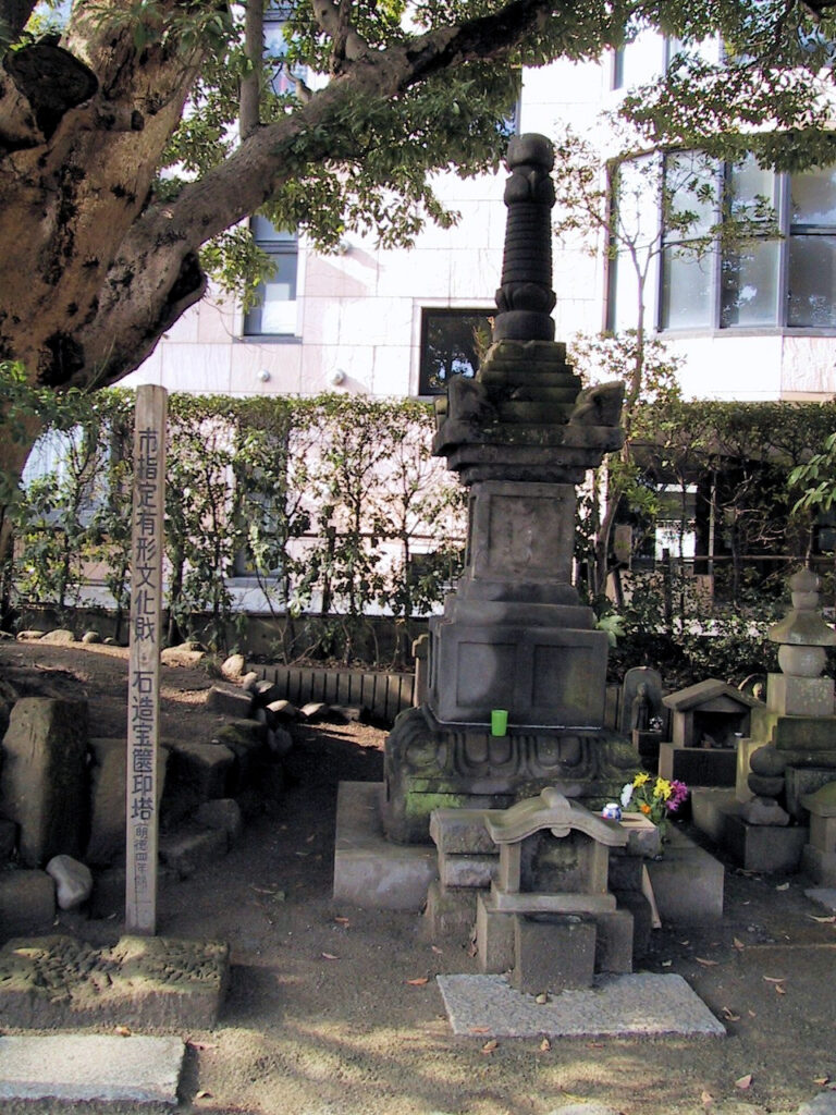 そのあと鶴岡八幡宮を見て、一の鳥居の所まで行きましたがそのすぐ近くに畠山重保の墓と伝えられる宝篋印塔がありました。これは明徳4年の銘があるので当時のものではありませんが、高さ3m以上もある立派なものでした。
