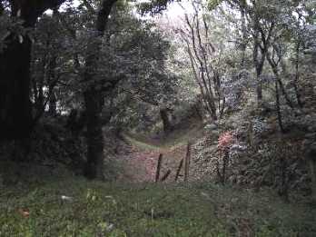 標柱の所から見ると、確かに大きな堀切がありました。少し上から見てみようと思いましたが、柵があって道路側からは入れない状態でしたので、諦めて次へ進みました。