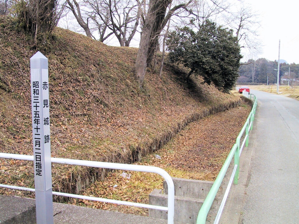 赤見城は安元元年(1175)足利城から佐野能忍寺郷に移った藤原姓足利俊綱が築城を開始し、治承2年(1178)に居城にしたと伝えられています。俊綱は同5年(1181)志田義広が源頼朝に背き挙兵するとそれに応じましたが、家臣桐生六郎が頼朝に内通したため殺害され、城も落とされました。