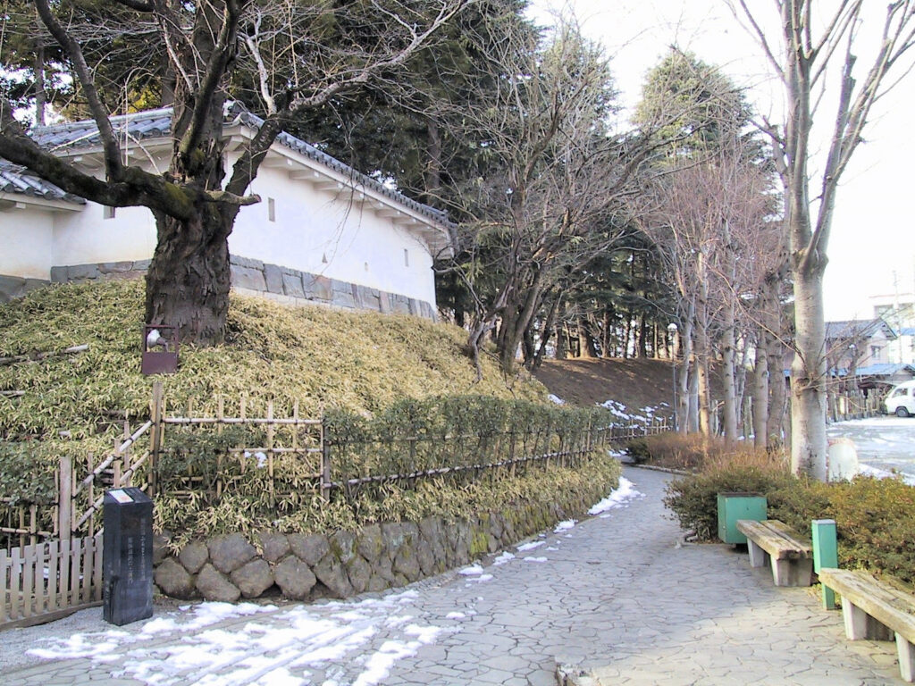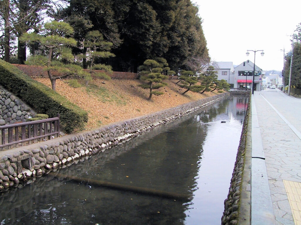 さあそしていよいよお城巡りです。まずは歴史資料館の入口となっている搦め手門跡から外側の泥田堀に沿って進みますが、すずりんさんたちのお話では普段はかなり湿っていて歩けないとのこと。この時はそれほどぬかるむでもなく、歩くことが出来ました。