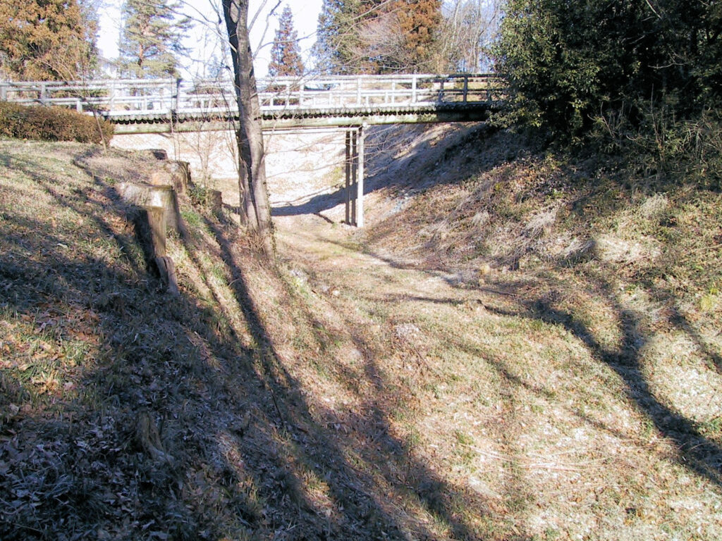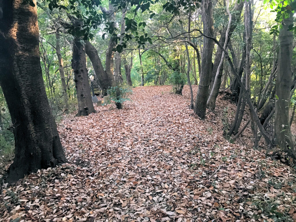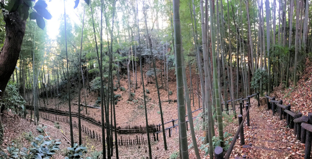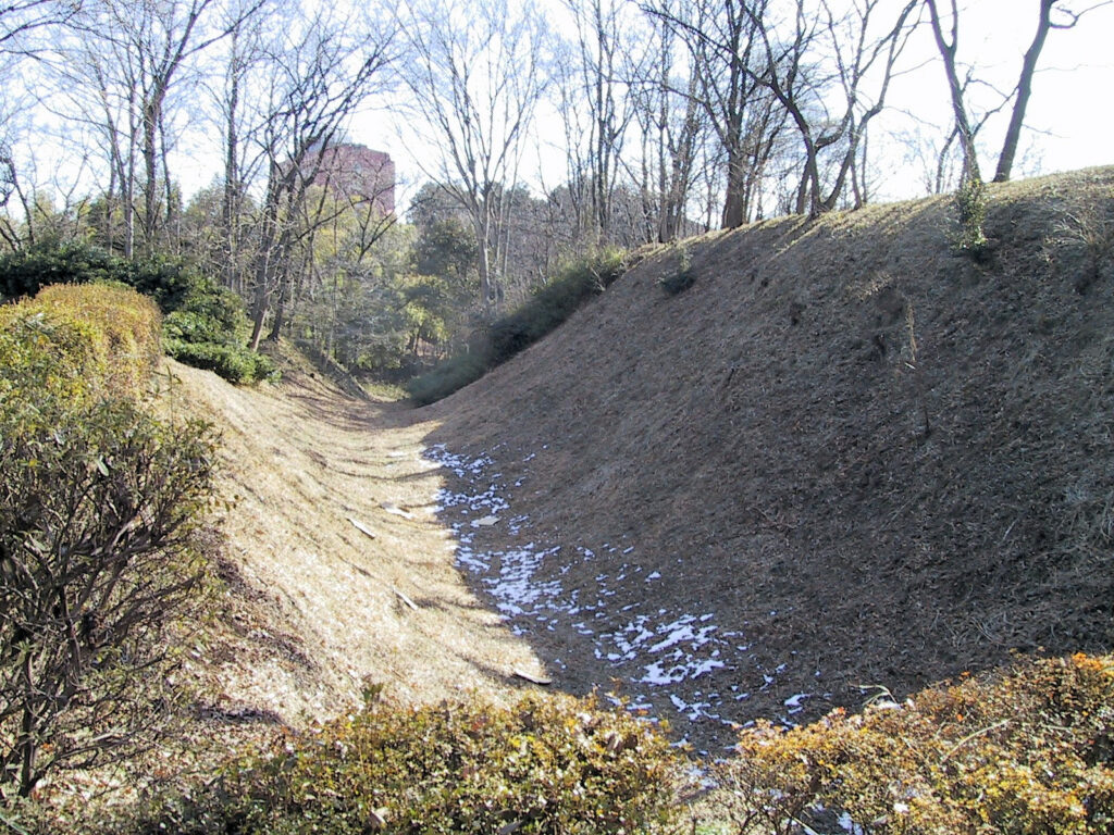FSIROのみなさんと八王子城を訪城した後、片倉城に移動しました。ここは現在公園となっており城跡としての面影はあまりありません。本丸と二の丸を区切る堀には現在橋が架かっていますが、この堀もかなりなだらかなものになっています。他には二の丸の外側を囲む堀も残っています。