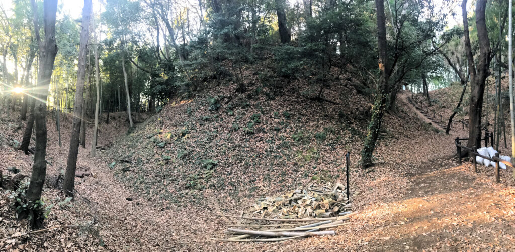 そのあとまた本丸に戻り二の丸を回って、先ほどの櫓台跡の外側の空壕へと進みました。こちらも大きく防御がしっかりしていることがうかがえます。